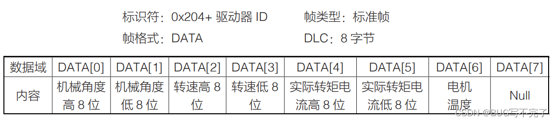 为了实现闭环控制,单片机需要接收电调的反馈报文得到电机的转速、机械转子角度、实时电流数据。