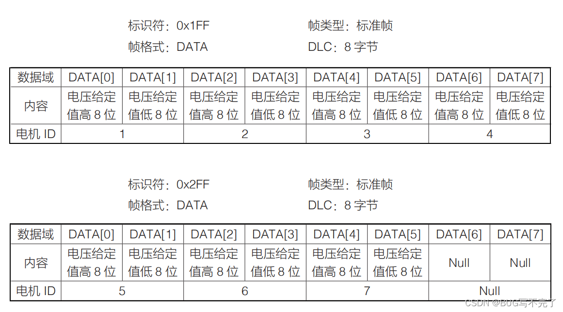 根据接收到的ID判断是哪一个电调的数据,电调反馈报文ID规定为 0x200+电调ID(1-8),如0x201(电调ID为1)。